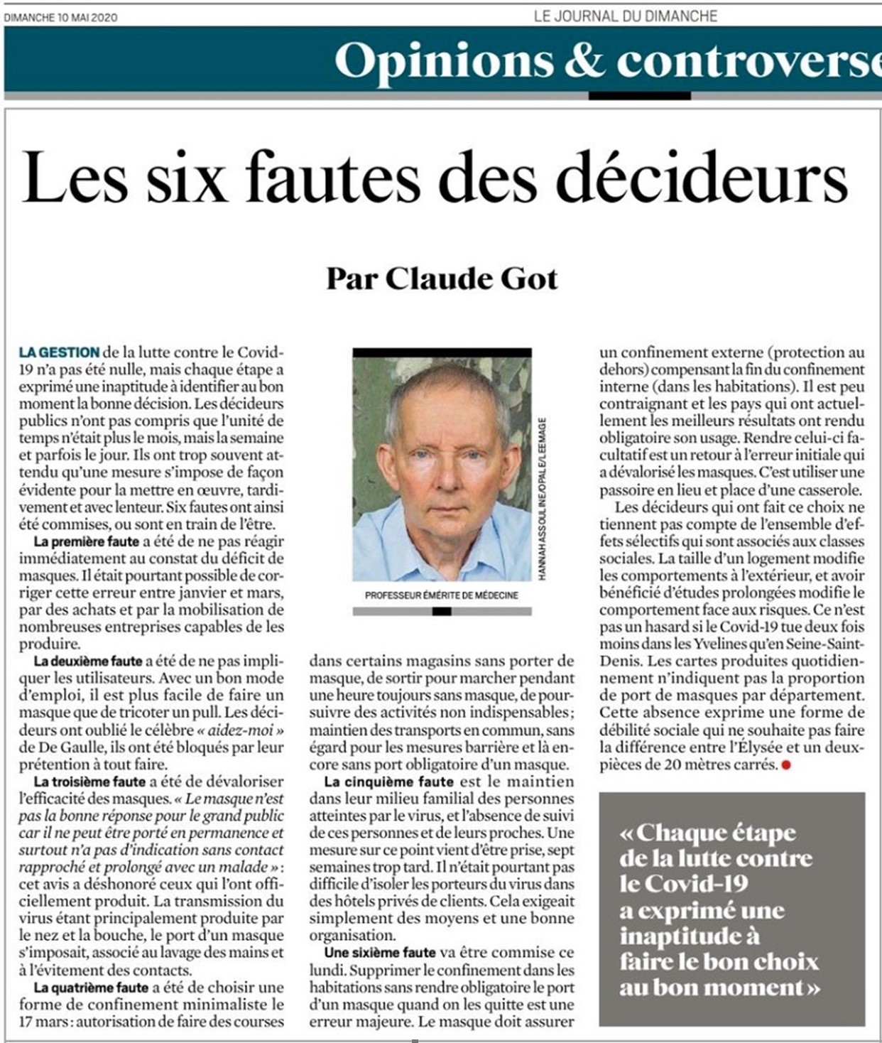 Texte personnel sur les erreurs de gestion de l'épidémie publié par le JDD le 10 mai